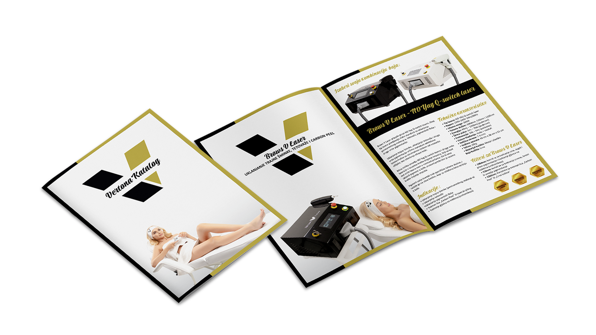 Brows V Laser pripada grupi ND Yag lasera. Prvenstvena namena je uklanjanje trajne šminke, karbonski piling poznatiji kao tretman crna lutkica, ali se može koristiti i za uklanjanje tetovaža i drugu vrstu pigmentacije.